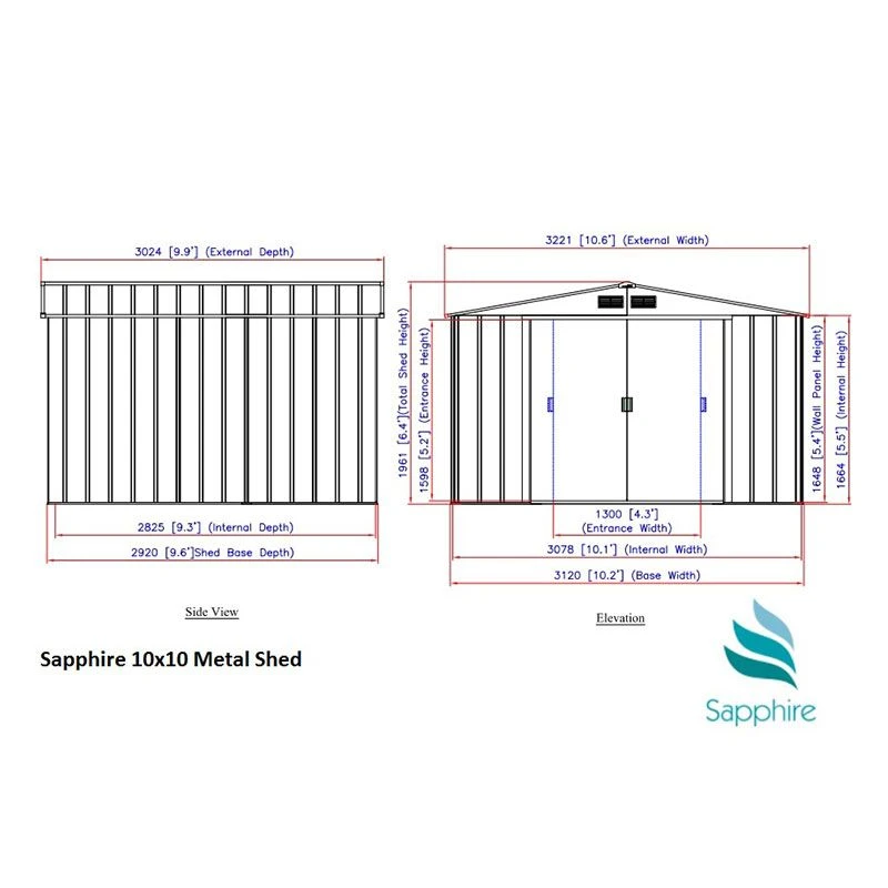 This premium metal shed has dimensions of 196cm x 322cm x 302cm and comes pre-cut, pre-drilled and with easy-to-follow instructions for a smooth, straightforward assembly.