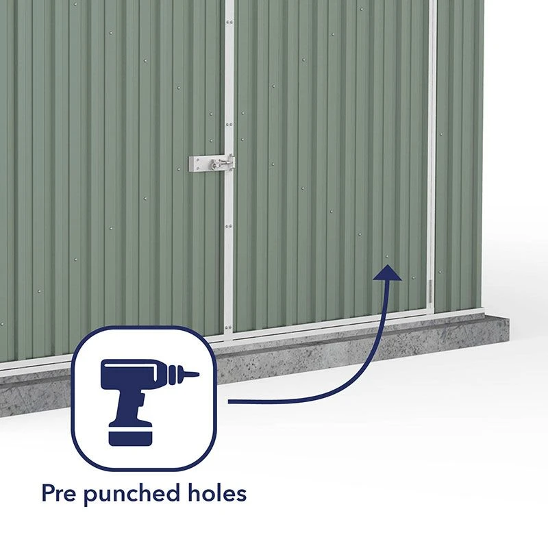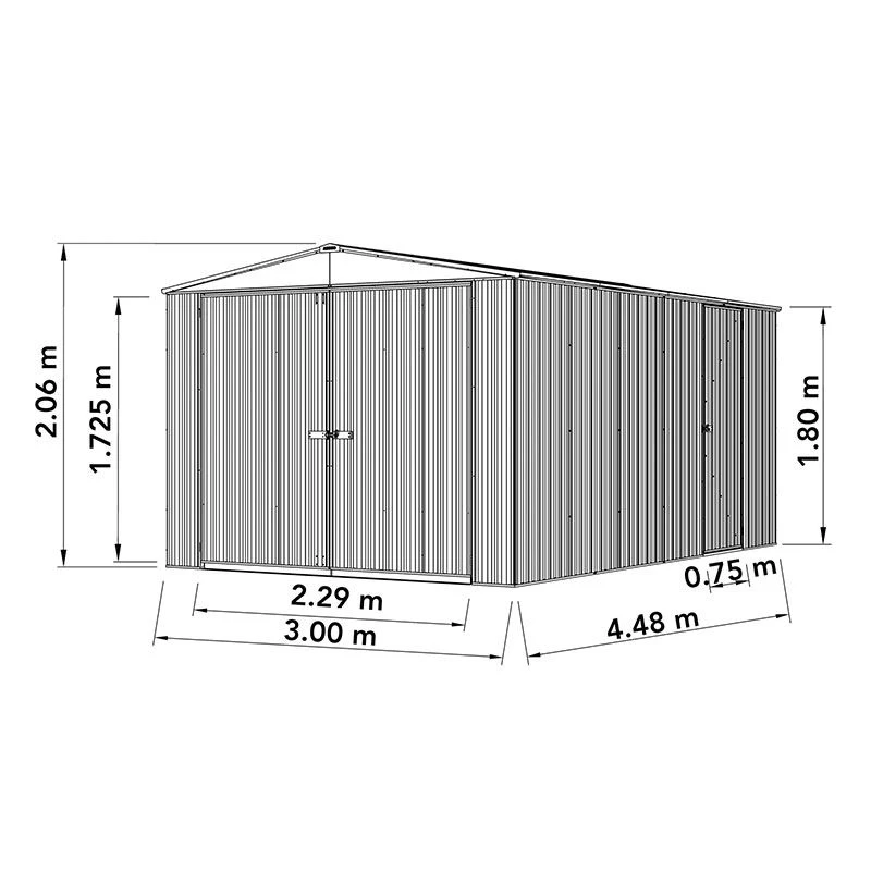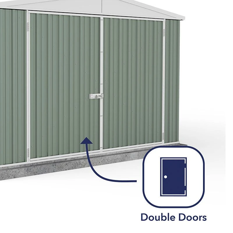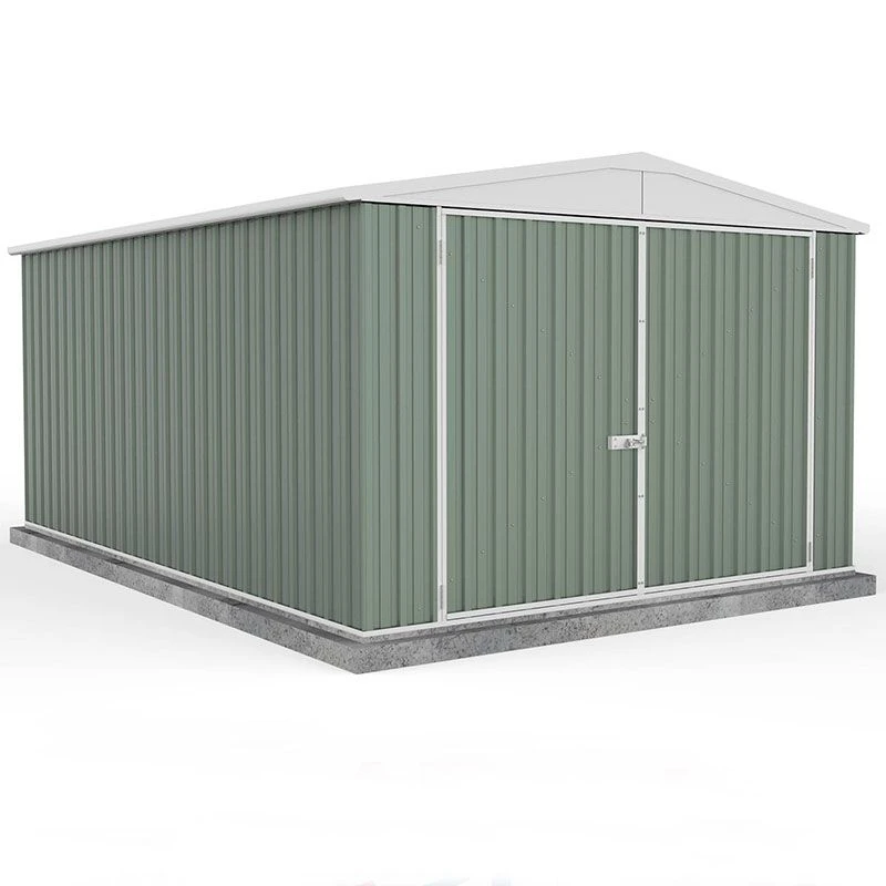 Boasting an exceptionally smart design, SNAPTiTE easy assembly and remarkable 30-year anti-rust warranty, the 10 x 15 Absco Utility Metal Garage Workshop Shed in Pale Eucalyptus (3m x 4.48m) is certain to meet even our most discerning customers’ requirements.