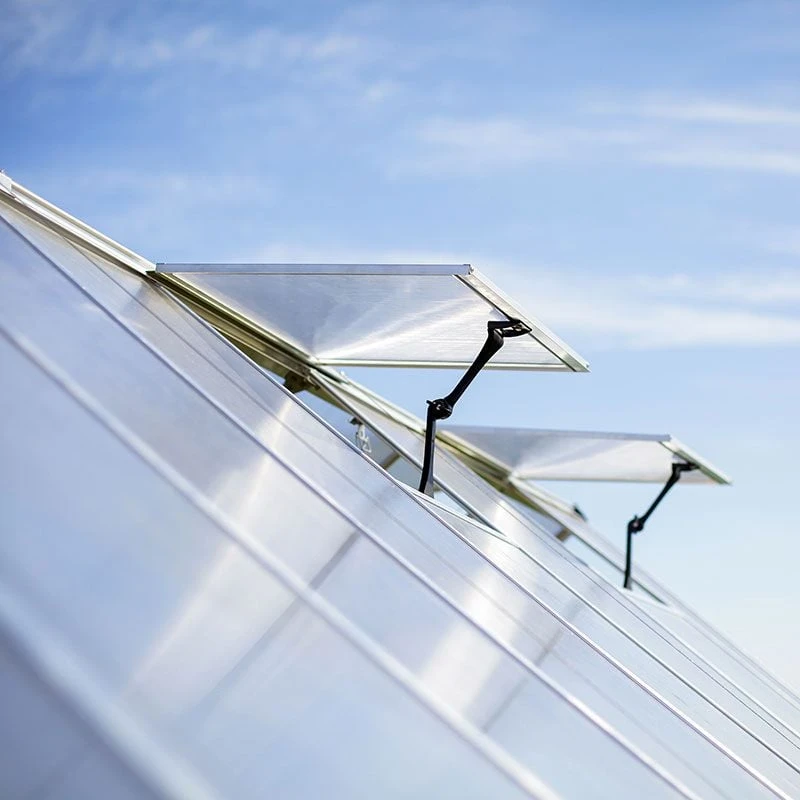 The light-diffusing roof panels promote an even temperature by increasing thermal insulation and reducing extreme sunlight exposure, while the side panels allow 90% light transmission. Both types of panel are shatterproof and completely UV protected, so your plants will enjoy optimal growing conditions, you will be protected from harmful UV rays, and the panels will neither discolour nor fade in the sun.