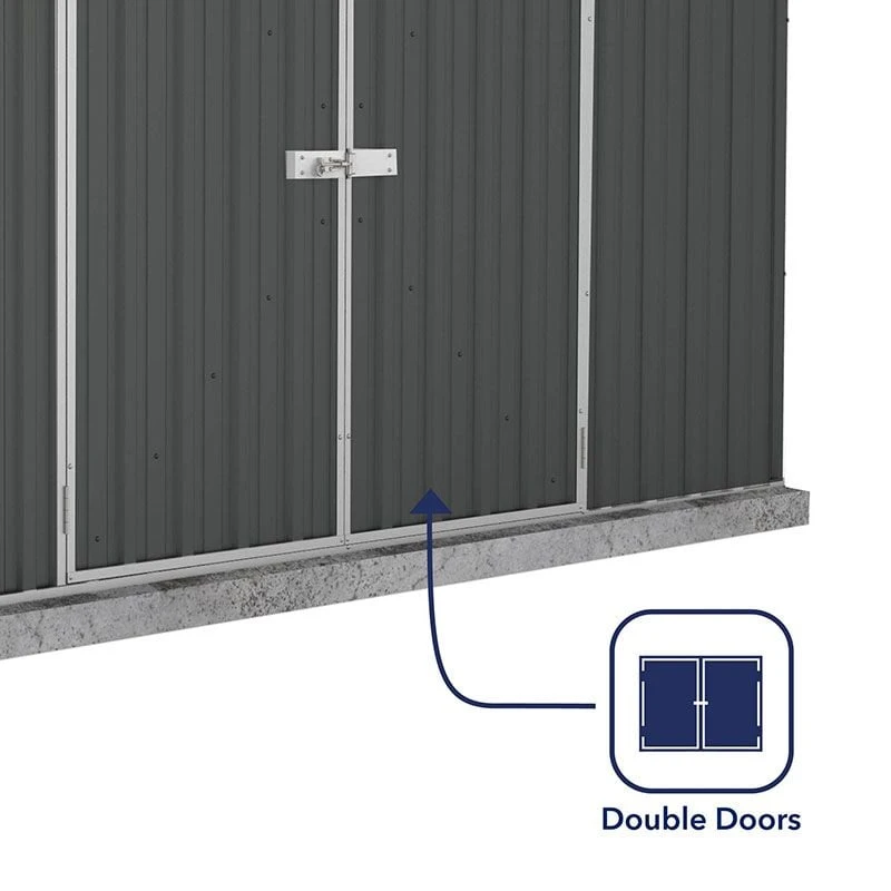 - Braced double doors include galvanised-steel pad bolt (padlock not supplied)