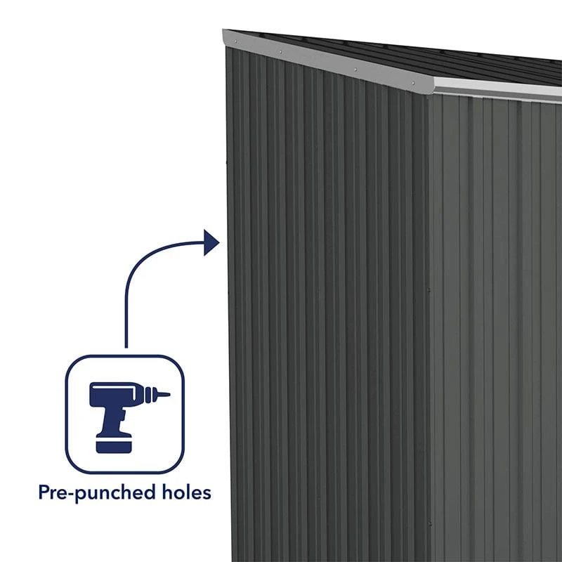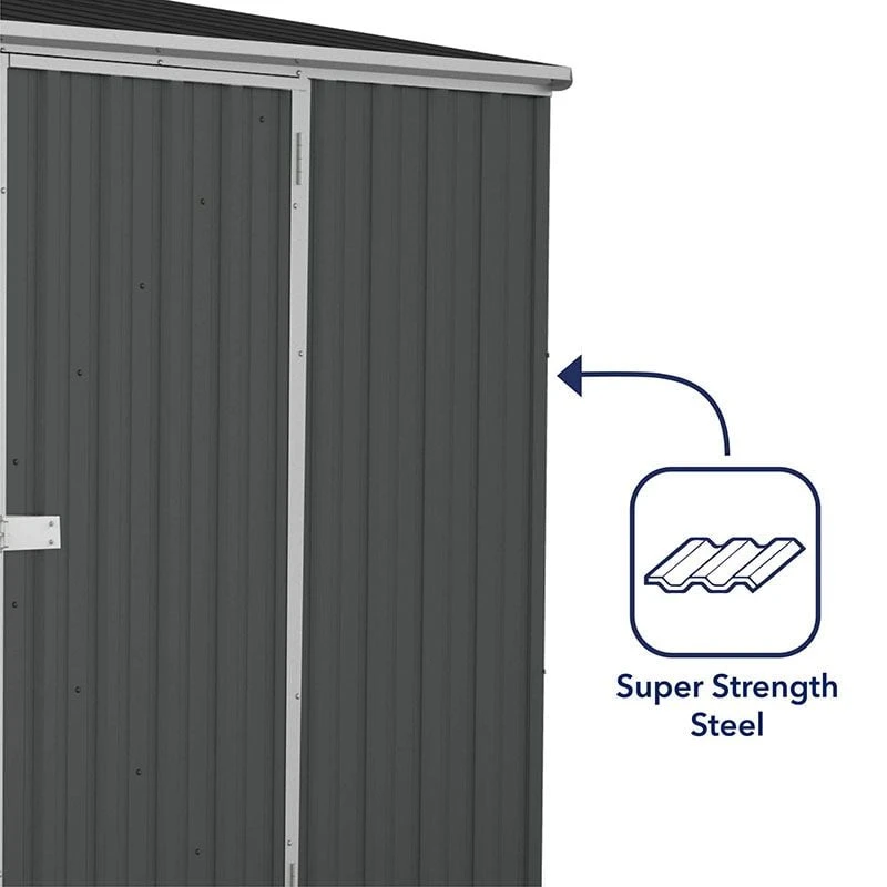 Boasting a contemporary design, patented SNAPTiTE technology and remarkable 30-year anti-rust warranty, the 10 x 5 Absco Space Saver Double Door Metal Shed in Dark Grey (3m x 1.52m) is sure to meet even our most discerning customers’ storage requirements.