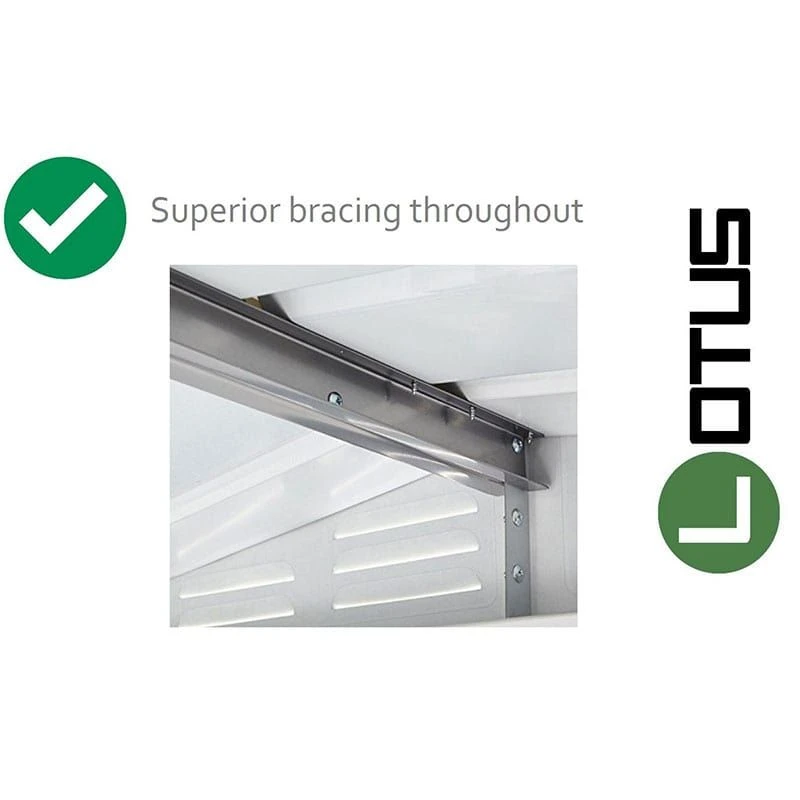 This garden shed is manufactured from hot-dipped galvanised steel throughout for an incredibly sturdy and robust build. Unlike traditional wooden garden sheds, this metal shed requires minimal if any maintenance and is rust, rot and rodent proof – saving you time and money. A 15 year anti-rust warranty supports this premium quality construction.
