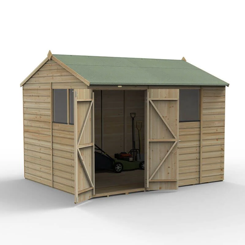 If you want to buy a Great British shed that offers more than just plain, old garden storage, choose a Forest Beckwood 25yr Guarantee Shiplap Pressure Treated Shed. A weather beating home for your tools, bicycles, fishing tackle and more, this particular model is the 10×8 Double Door Reverse Apex Shed (3.01m x 2.61m), so there’s nothing to stop you using it as a garden workshop too. Here’s what else makes this Beckwood shed special…