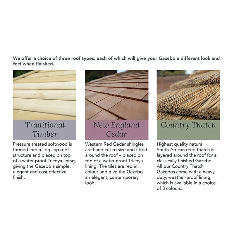 *Please note that the main picture shown for this product is of the Forest 3.6m Hexagonal Gazebo with New England Cedar Roof.