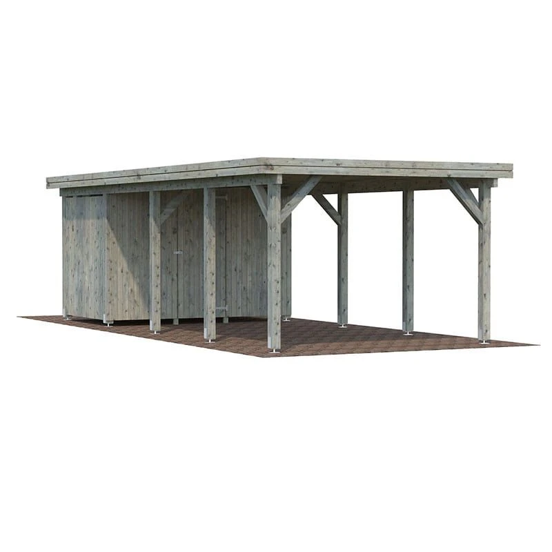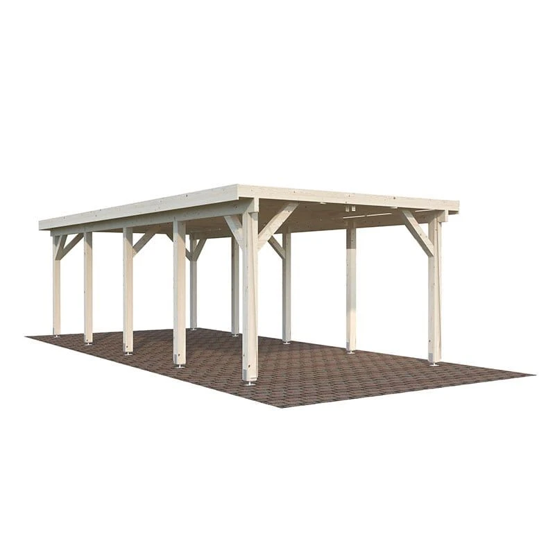 Completely constructed from the finest Nordic spruce, this wooden car shelter consists of a 19mm tongue and groove flat roof on strapping 120mm² laminated wood support posts, so is robust, durable and perfectly equipped to shield your vehicles from rain, sleet and snow.