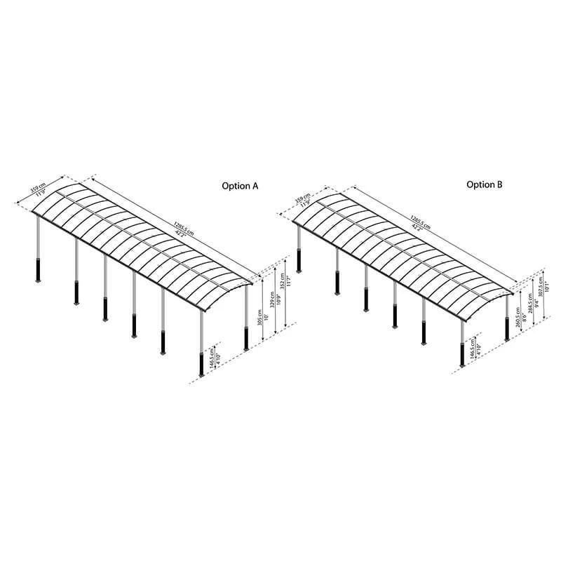 If you own a large caravan, motorhome or trailer, the 12×42 Palram Canopia Arcadia Alpine 12700 Grey Metal Carport (3.59m x 12.86m) offers it complete weatherproof protection. Supplied with a 10-year limited warranty, this adjustable car shelter’s superb specification also makes it suitable to use as a garden gazebo.
