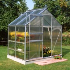 You can purchase a model of this aluminium greenhouse in 3 different sizes, and with a black, green or silver-coloured frame; the choice is entirely yours. Should you desire, there’s an option to upgrade to 6mm polycarbonate glazing on any of these models. If you wish to customise your new greenhouse, you can also purchase some great greenhouse accessories, including an automatic vent arm and 2-tier potting bench.