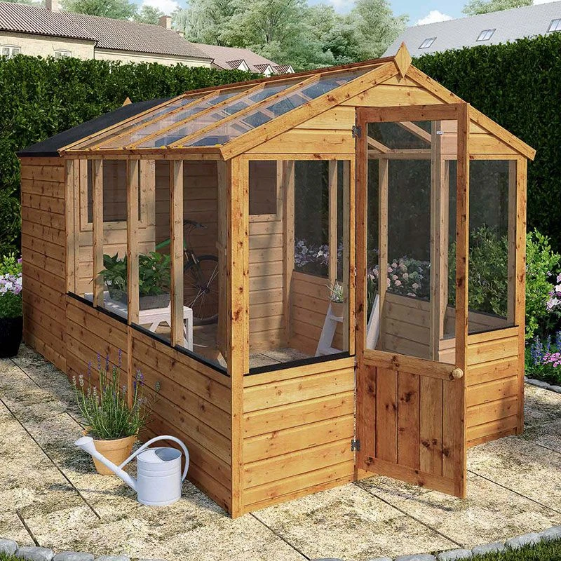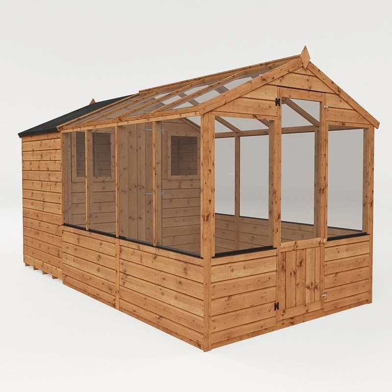 12'x6' (3.6x1.8m) Mercia Shiplap Wooden Apex Greenhouse Combi Shed -Lifetina Shop base option plastic base new 3 3