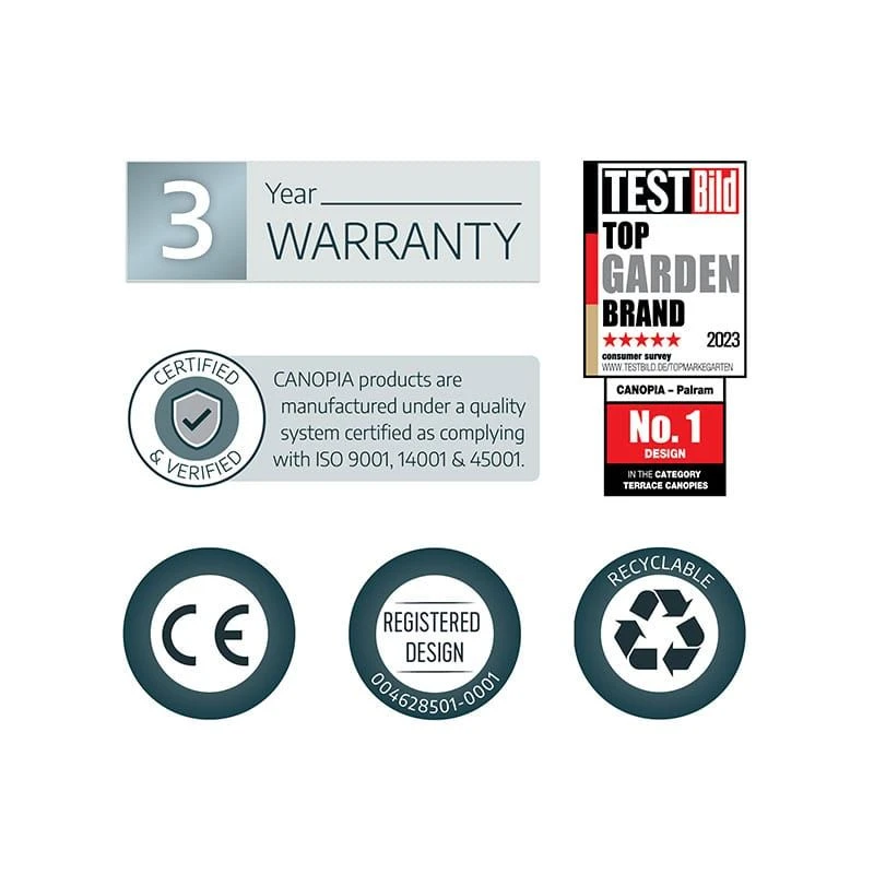 This door porch canopy is constructed from 100% recyclable materials and supplied with a 3-year limited warranty. It is completely maintenance free, saving you both time and money.
