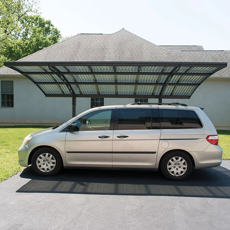 Protect your car from the elements while enjoying hassle-free parking, with the gorgeous 16×10 Palram Canopia Arizona Wave 5000 Grey Metal Carport (4.8m x 3m) – an eye-catching, 2-legged car shelter with a superb 10-year limited warranty.