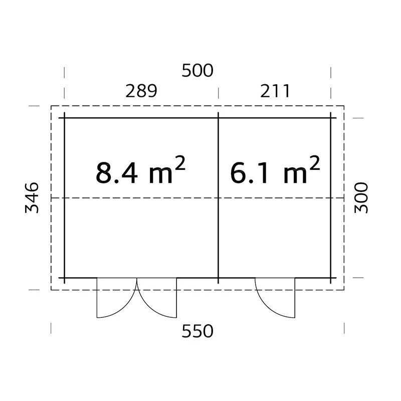 You can gain easy access to the 8.4m² section of this workshop shed via double doors, while a single door leads to the 6.1m² area. As befits a garden workshop, both sets of doors are positioned on the wider side of the structure. They are also fitted with a hasp and staple (padlocks not included), so you can add a padlock if you need further security. Also, with security in mind, this garden shed is designed without windows.