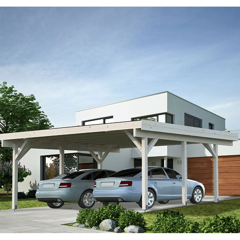 Completely constructed from the finest Nordic spruce, this large wooden car shelter consists of a 19mm tongue and groove flat roof on strapping 120mm² laminated wood support posts, so is robust, durable and perfectly equipped to shield your cars from rain, sleet and snow.