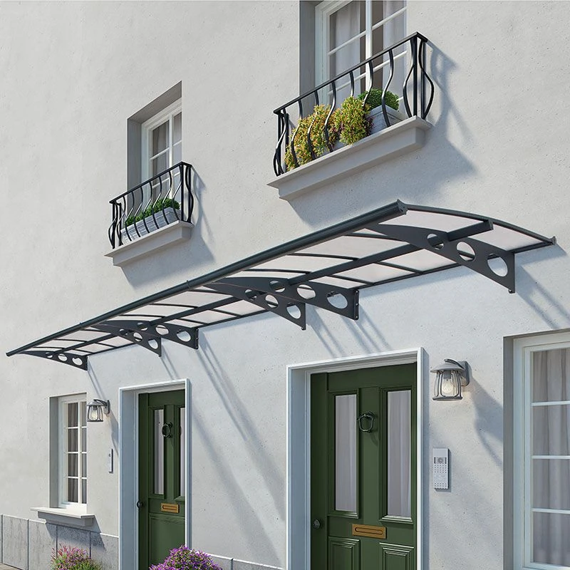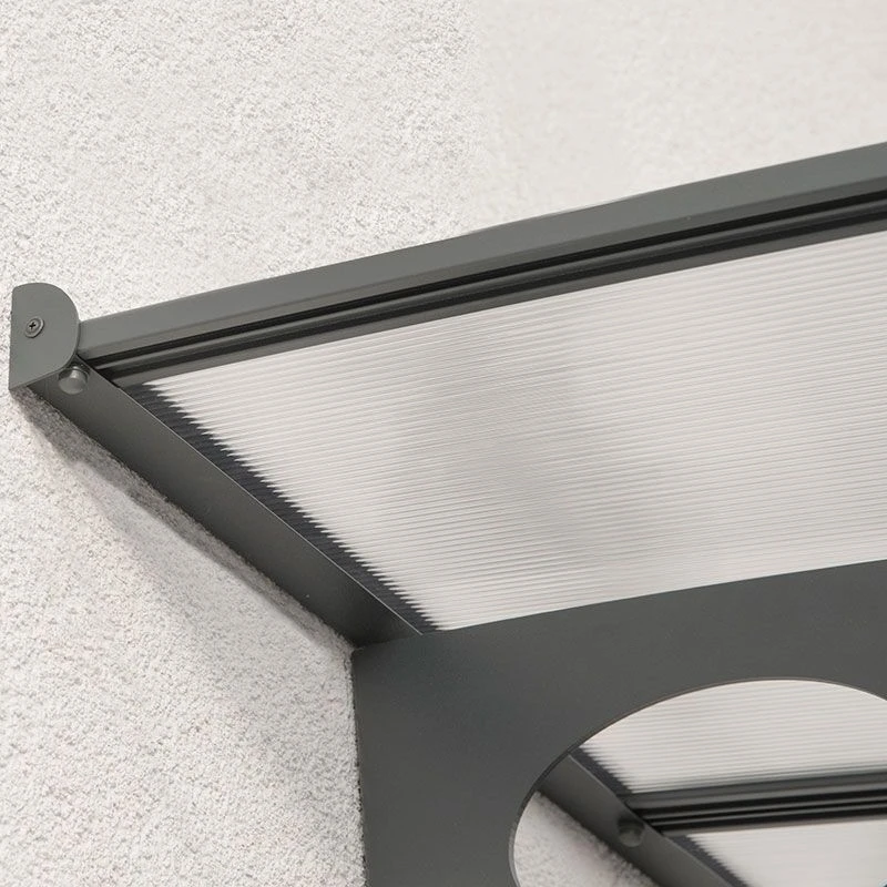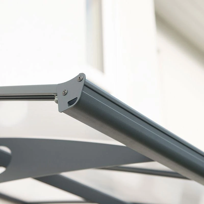 This door canopy’s polycarbonate panels are delivered pre-cut, the profiles are pre-drilled, and mounting hardware is included, all of which should help you achieve a straightforward DIY installation, without the need for specialist tools. A smart and fast locking system eliminates the need for screws, removing any risk of leaks.