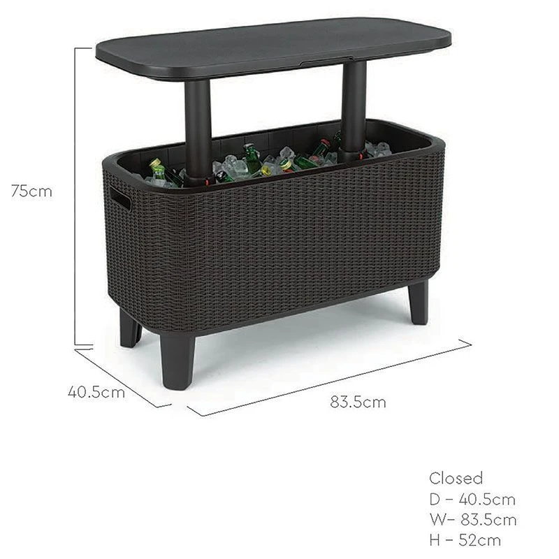 Expertly constructed from durable resin, this garden bar is completely water resistant and will last for years. With its contemporary rattan-effect finish and UV protection, this garden drinks cooler makes an eye-catching addition to any outdoor area, and neither discolours nor fades in the sun. It is completely maintenance free and can be kept looking pristine with just a damp cloth and soapy water.