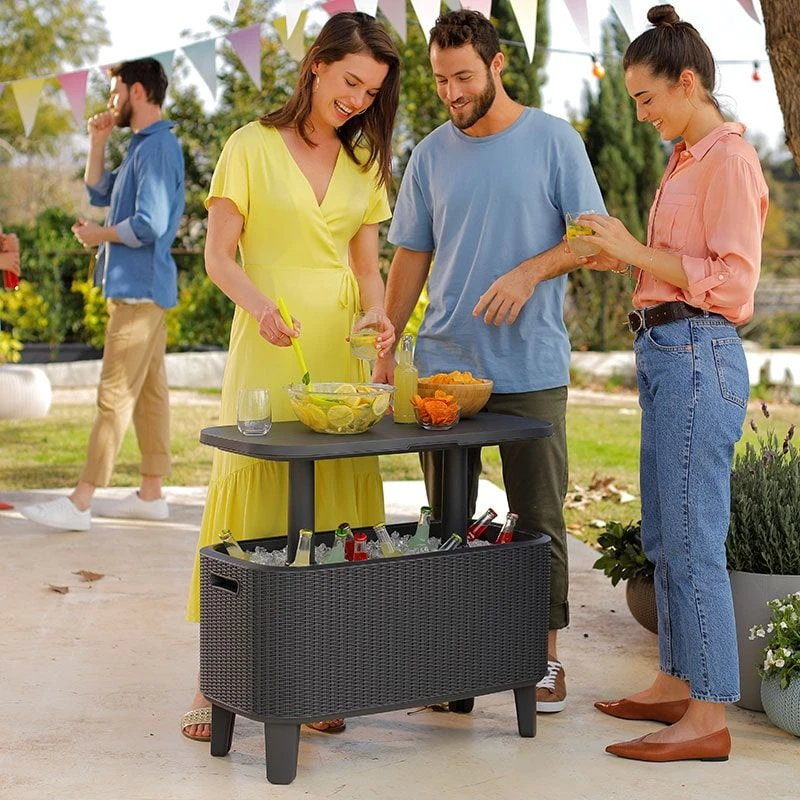 You can become the garden party and BBQ ‘host with the most’ once you’ve purchased this garden bar, which includes both a stylish outdoor cocktail table and spacious drinks cooler.