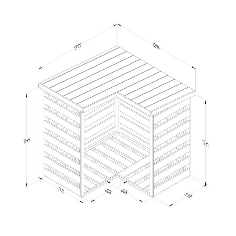 Keep your logs dry, aired and in perfect condition to burn with the 4’3 x 4’3 Forest Pent Corner Logstore (1.3m x 1.3m). This UK-made woodstore is designed to fit snugly into a corner of your garden and, with a 1m³ log capacity, is perfectly sized to hold a handy supply of logs.