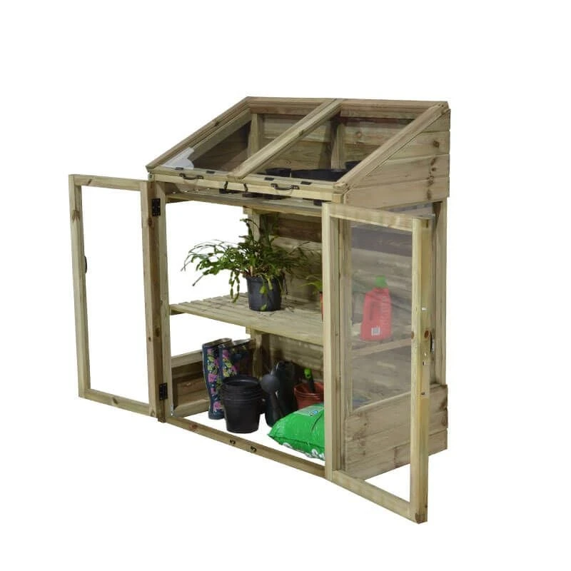 With its double independently opening lids, two doors and compact size, the wooden Mini Greenhouse is ideal for the smaller garden or patio where space is at a premium.
