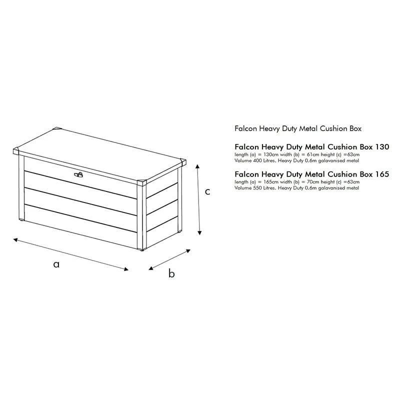 A superb place to store your garden cushions and equipment, the Falcon 165 Heavy Duty Metal Garden Storage Box 550L is robust, spacious and maintenance free.