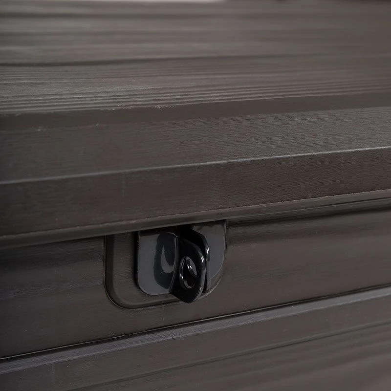 You can gain easy access to the storage boxβs generous 454-litre capacity via a piston-assisted lid, while a catch and padlock fixing give you peace of mind that your valuable items are safe from unwanted attention (padlock not included). Finger recesses are found at either end of the deck box to help you safely manoeuvre it around the garden.