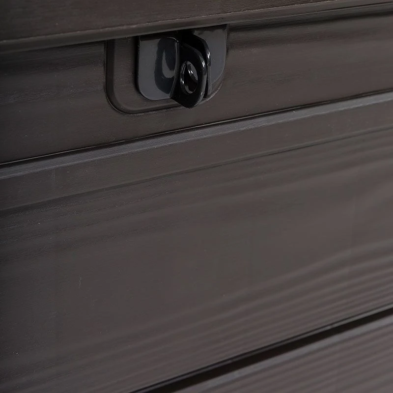 Expertly constructed from durable resin, this outdoor storage box is completely weatherproof and will last for years. With its smart wood-effect finish and UV protection, this premium deck box makes an eye-catching addition to any patio, and neither discolours nor fades in the sun. It is completely maintenance free and can be kept looking pristine with just a damp cloth and soapy water.
