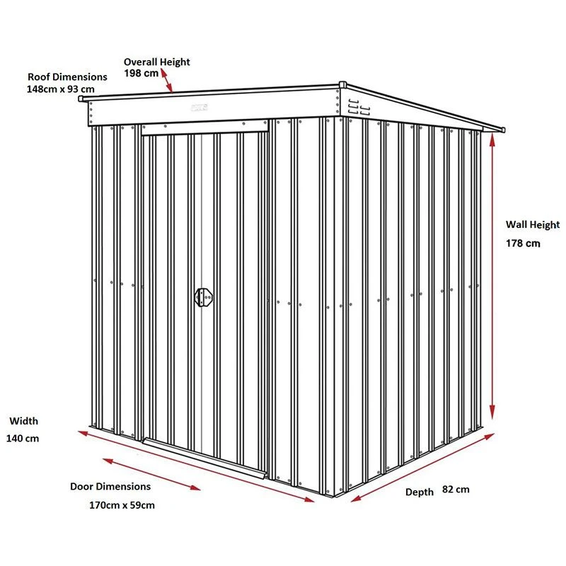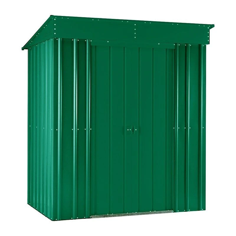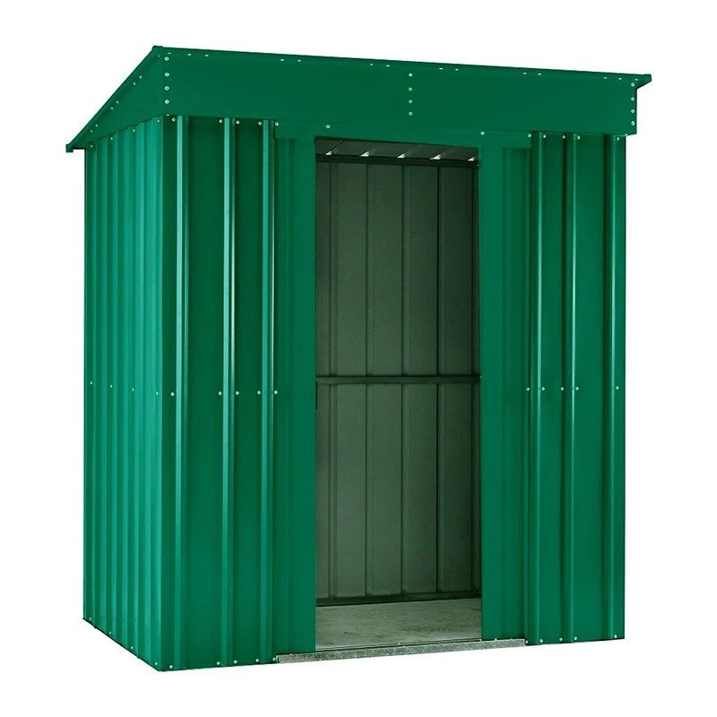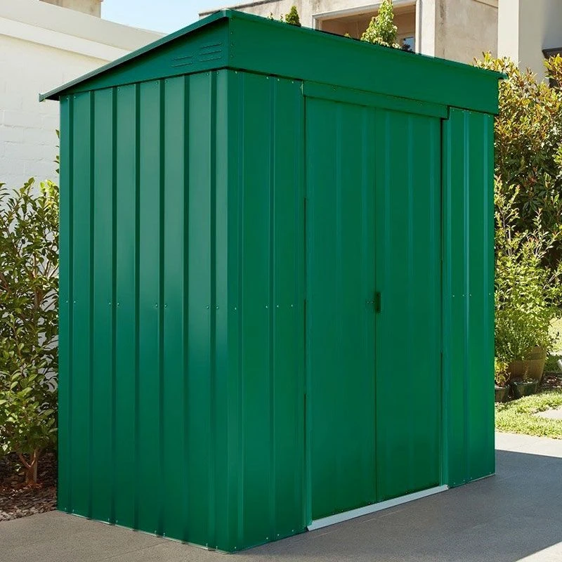 In traditional heritage green, this attractive shed is sure to complement your garden. This pent roof shed has higher eaves than most to provide extra headroom for you and more storage space for your garden equipment. Ventilated gables combat condensation and improve airflow. Even the door and track are designed for strength and simplicity. This shed is also perfect for caravan parks where non-combustible storage sheds are compulsory.