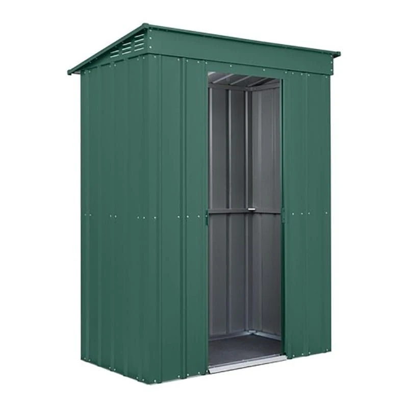 Combining high quality materials with innovative design, this Globel Pent 5×3 Heritage Green Shed offers you the highest specification for lightweight metal sheds on the market. The Globel range of garden sheds is the final result of two years of research and development to produce metal sheds which are stronger, more durable and easier to build but still excellent value.