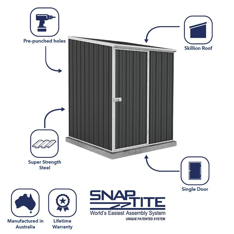 Boasting a contemporary design, patented SNAPTiTE technology and remarkable 30-year anti-rust warranty, the 5 x 5 Absco Space Saver Pent Metal Shed in Dark Grey (1.52m x 1.52m) is sure to meet even our most discerning customers’ storage requirements.