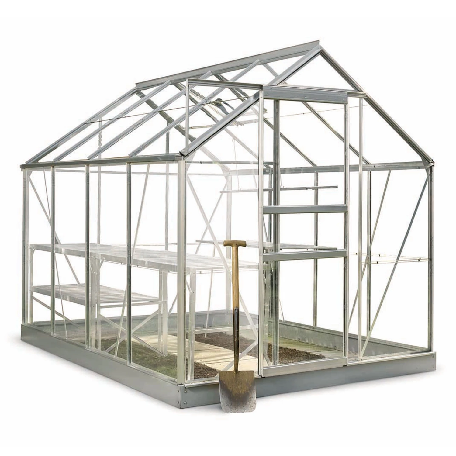 Constructed from robust, durable, low-maintenance aluminium, the greenhouse frame is further strengthened by diagonal bracing. A model powder-coated in dark green is also available, if you would prefer.