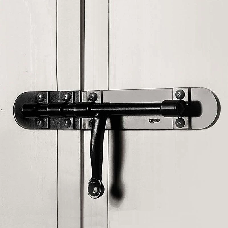 - Double doors fitted with a gloss-black bolt and matching hinges