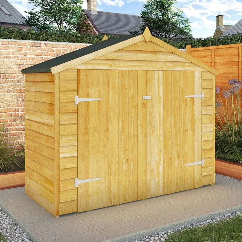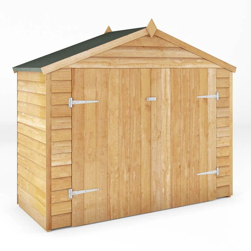 From the Mercia storage unit range, The 7’x3′ Overlap bike shed store. This store is very versatile: it can be used as a small general garden store or simply as bicycle storage to hide two adult bikes from view. Access to the bike store shed is provided