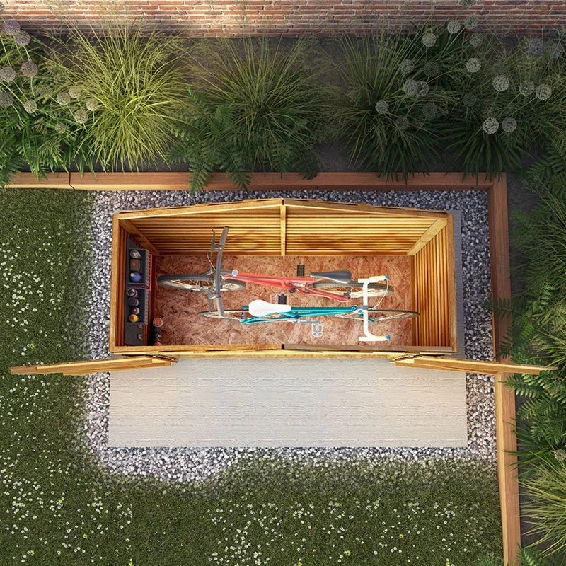 - The Mercia bike store is the perfect size for the storage of two adult bikes