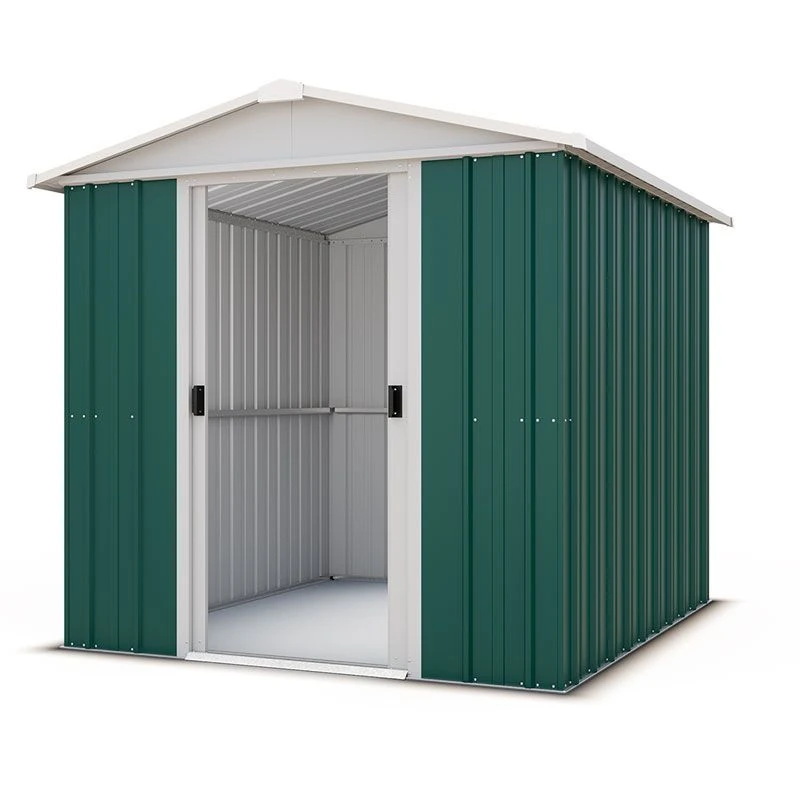 A traditional apex roof and a gorgeous baked-on emerald-green finish ensure that this garden storage shed doesn’t just boast brawn but beauty too, whilst the 7 layers of protection eliminate any risk of corrosion and ensure the shed’s immaculate appearance will endure for many years to come.