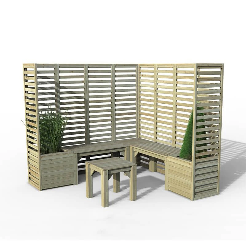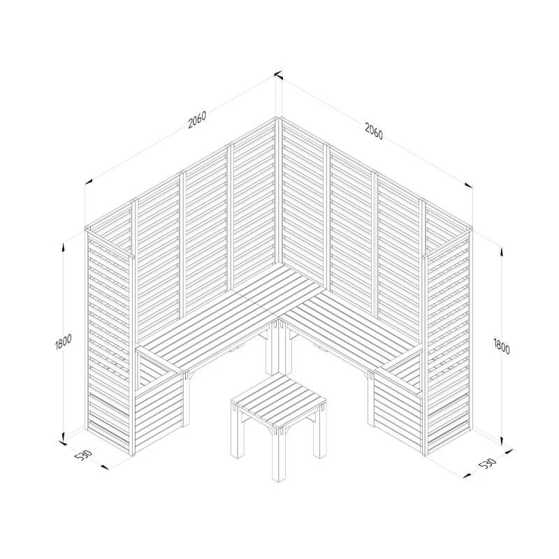 Offering you an idyllic area in which your family can relax in the garden, the 6’9 x 6’9 Forest Modular Wooden Garden Seating Set Number 3 (2.06m x 2.06m) is the perfect outdoor seating for anyone who likes to get creative with their garden design.