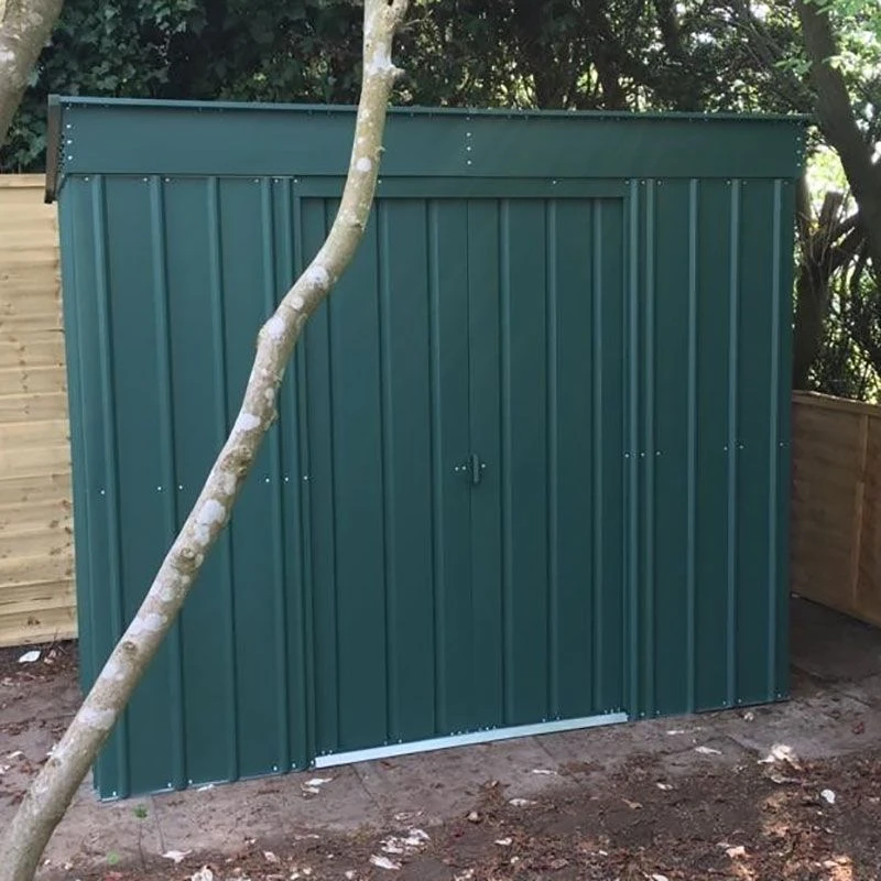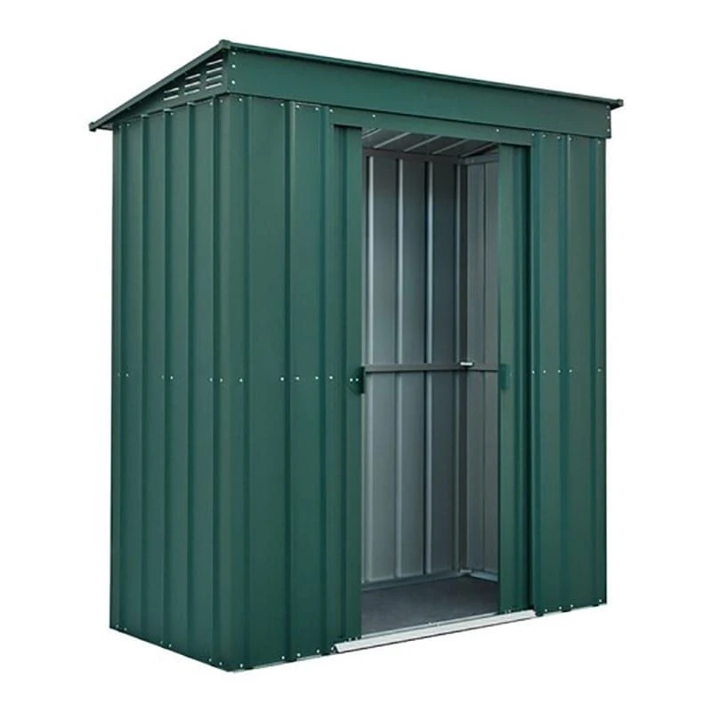 In traditional heritage green, this attractive shed is sure to complement your garden. This pent roof shed has higher eaves than most to provide extra headroom for you and more storage space for your garden equipment. Ventilated gables combat condensation and improve airflow. Even the door and track are designed for strength and simplicity. This shed is also perfect for caravan parks where non-combustible storage sheds are compulsory.