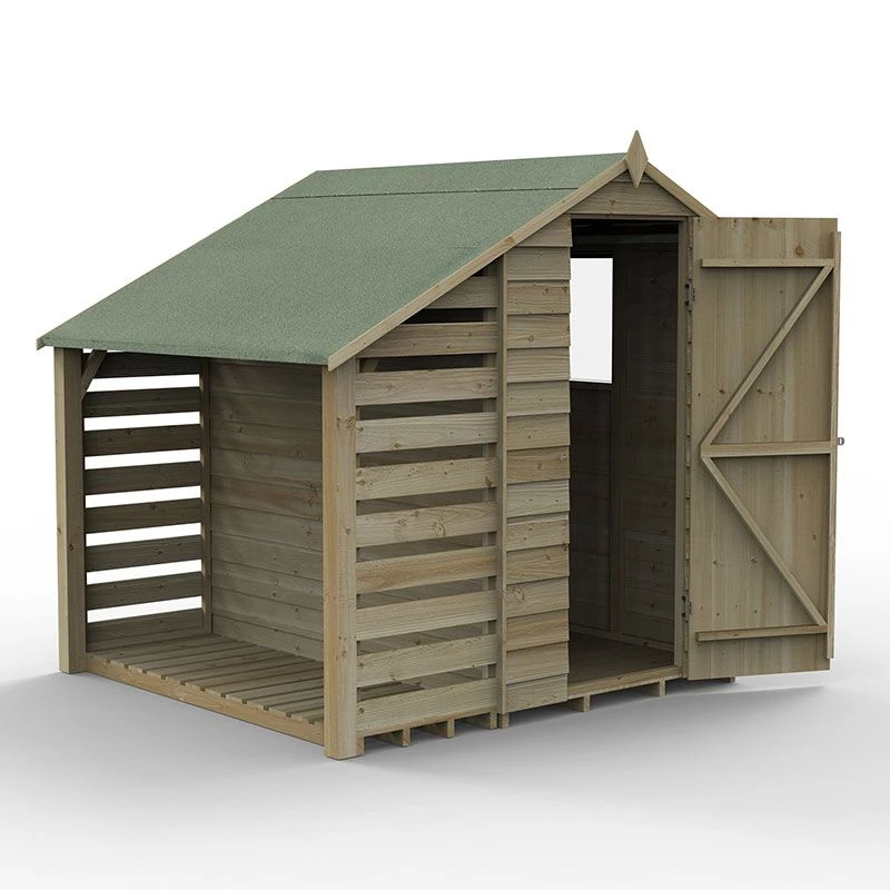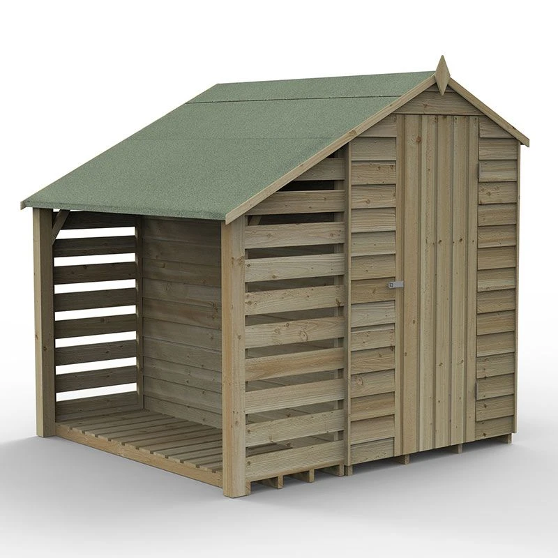 Available in a range of designs and sizes, Forest 4Life™ Overlap Pressure Treated Sheds are beautifully handcrafted here, in Great Britain. Packed full of premium features, they are the best range of overlap sheds Forest has ever made. This particular model is the 6×4 Apex Shed with Lean To (1.88m x 2m), making it perfectly suited to people requiring general-purpose garden storage plus an integral log store.