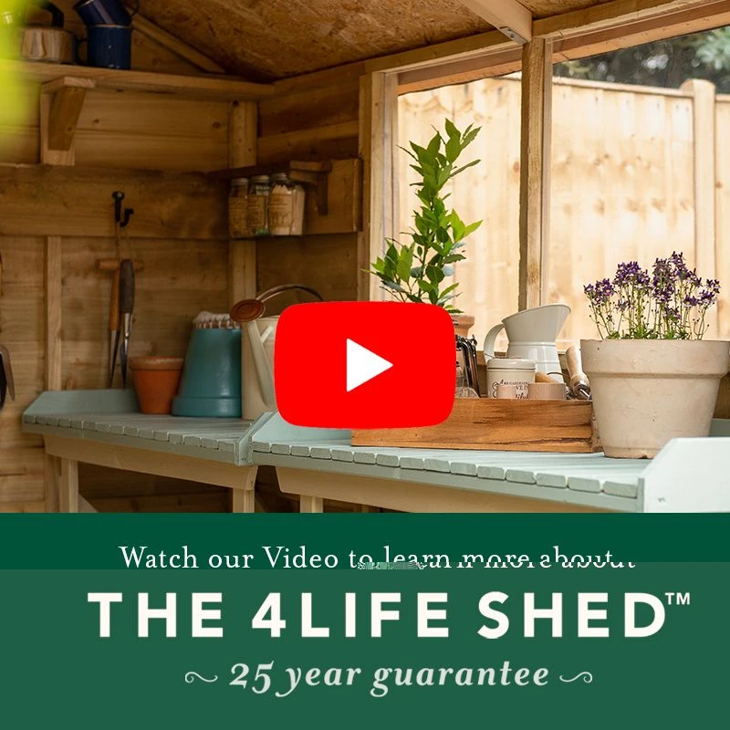 This garden shed is expertly designed and built by Britain’s leading manufacturer of wooden sheds. Pressure treated and supplied with an extraordinary 25-year anti-rot guarantee, which is the longest guarantee on the market, the wood will never need retreating, sparing you the inconvenience of costly, time-consuming maintenance and providing you with an unbeatably durable shed. You’ll only ever need one shed with a 4Life™ Shed!