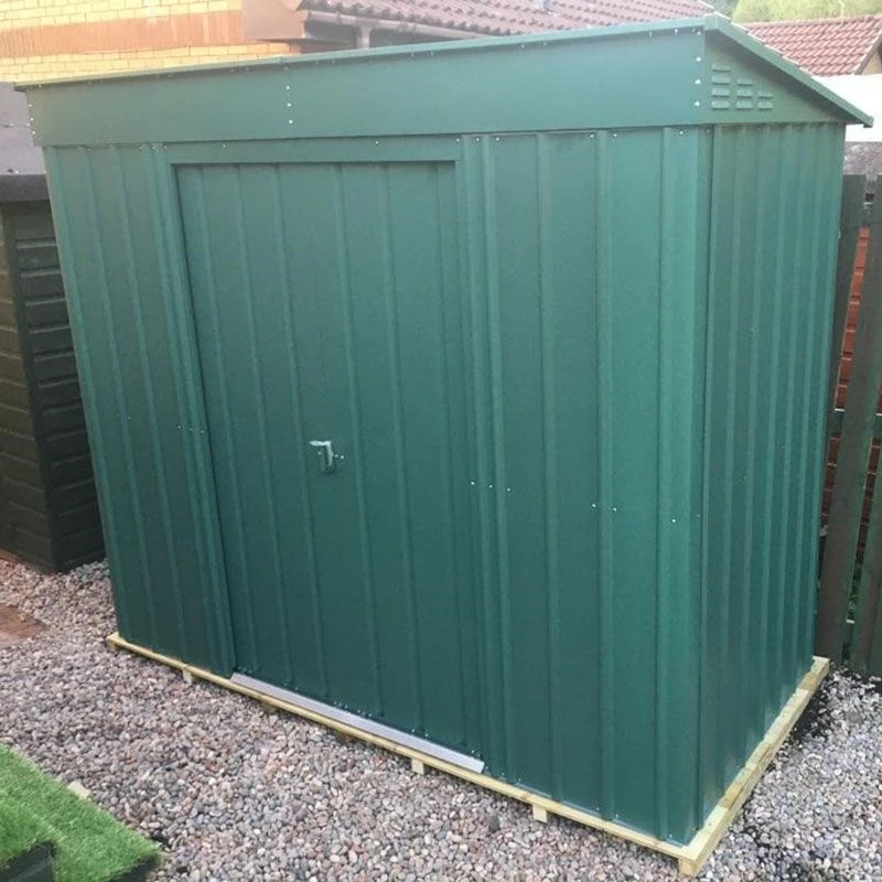 Combining high quality materials with innovative design, this Globel Pent 6×4 Heritage Green Shed offers you the highest specification for lightweight metal sheds on the market. The Globel range of garden sheds is the final result of two years of research and development to produce metal sheds which are stronger, more durable and easier to build but still excellent value.