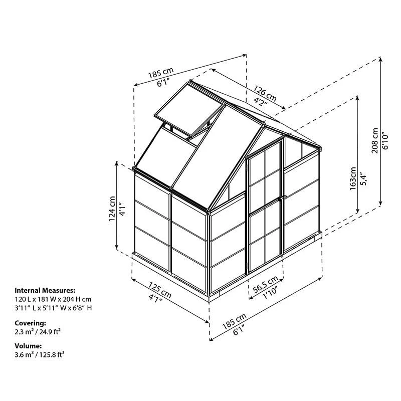 Intelligently designed and brimming with high-specification features to help your plants prosper, the 6×4 Palram Canopia Hybrid Grey Polycarbonate Greenhouse (1.8m x 1.2m) is easy-to-assemble, built to last and completely maintenance-free.