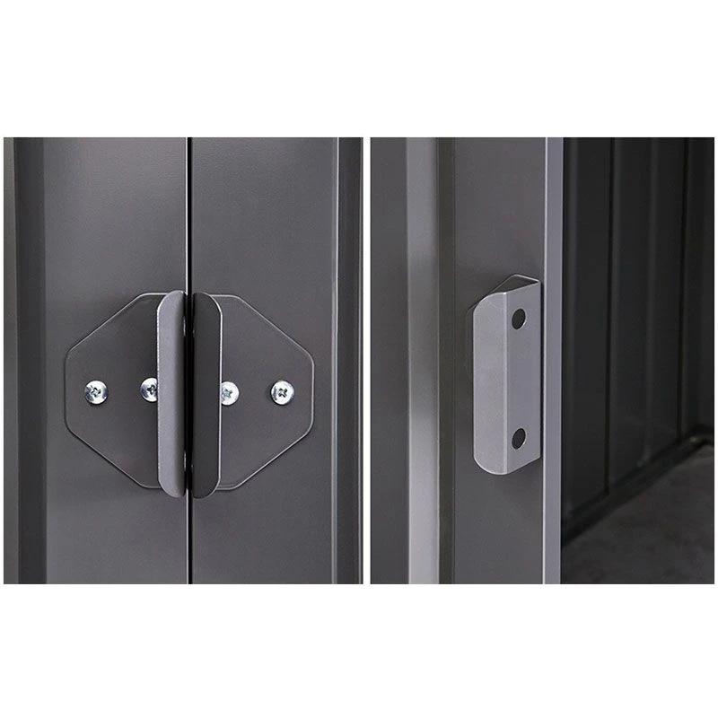- Double sliding doors with steel handles and padlock point