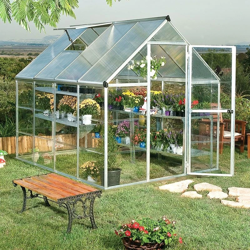 Intelligently designed and brimming with high-specification features to help your plants prosper, the 6×8 Palram Canopia Hybrid Silver Polycarbonate Greenhouse (1.85m x 2.41m) is easy-to-assemble, built to last and completely maintenance-free.
