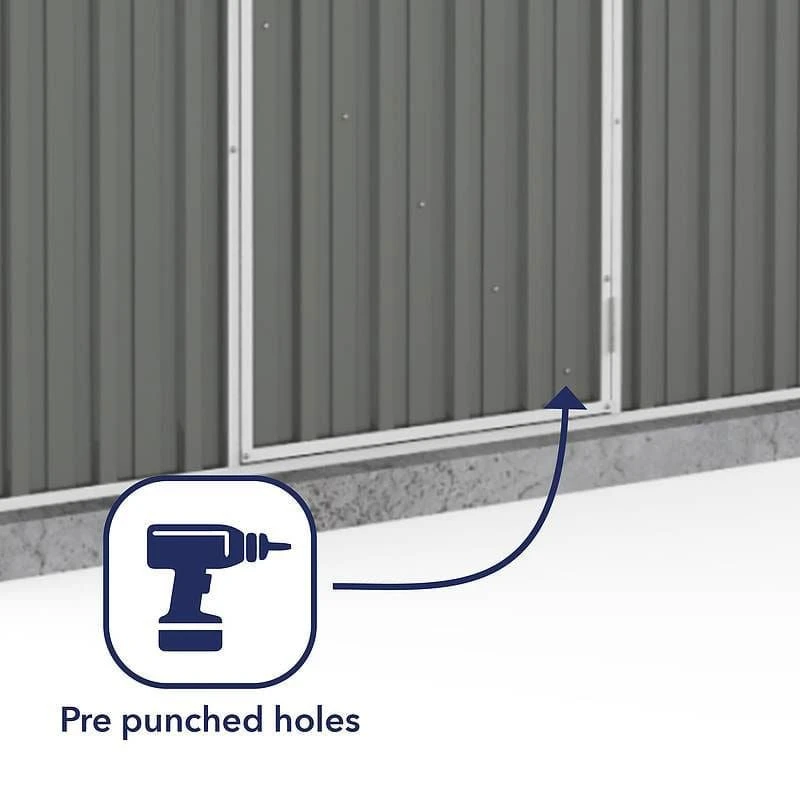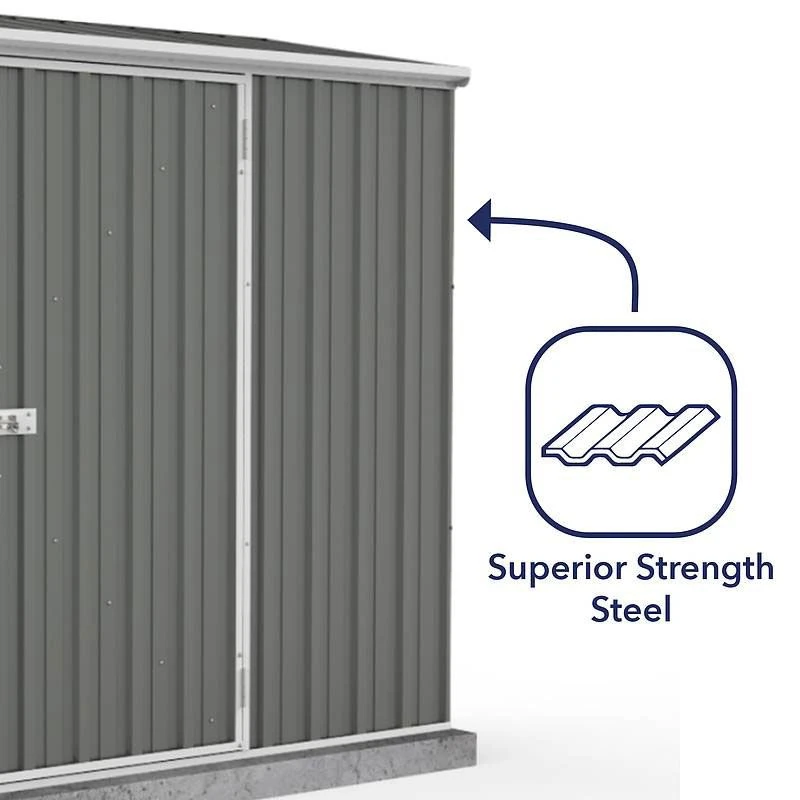 This garden shed is expertly built in Australia from Bluescope high-tensile steel, which makes it incredibly robust, exceptionally durable and completely watertight, while the grey colour-bond painted finish ensures an exceptionally eye-catching appearance. Furthermore, it is wind tested to 147kmph (when anchored to a solid base), so you can rest assured that any stored items will enjoy COMPLETE weatherproof protection.