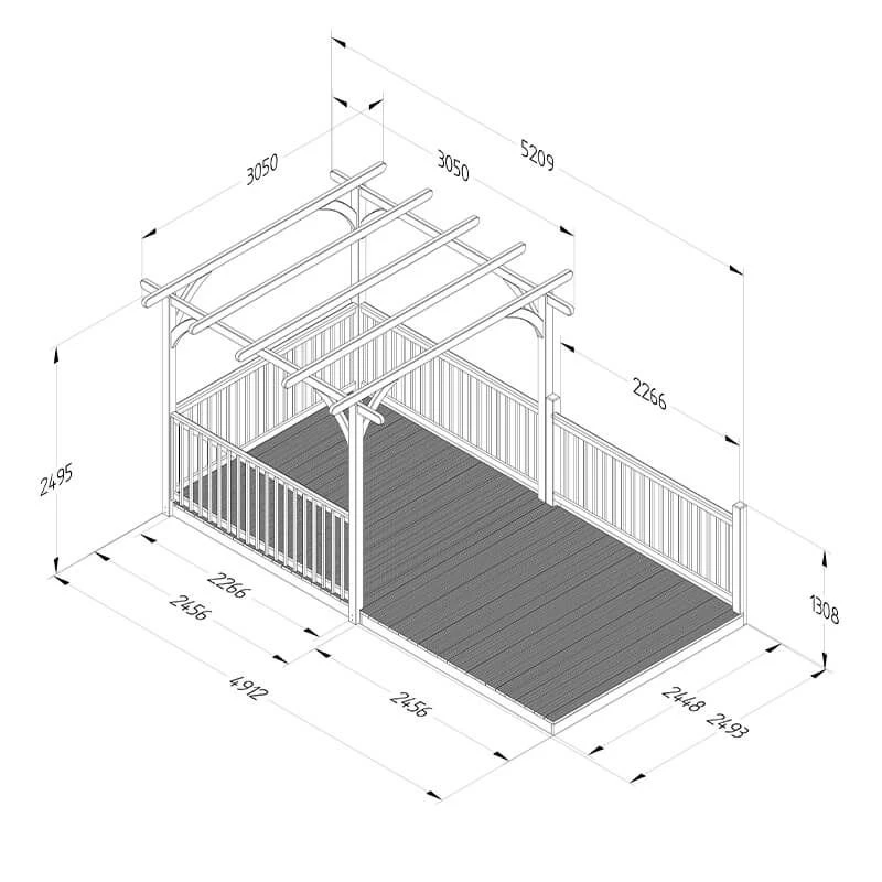 Featuring a pergola, 8×16 decked area and 4 x 8ft balustrades (approximate measurements), this decking kit offers a wonderful backdrop to all of your outdoor entertainment plans.