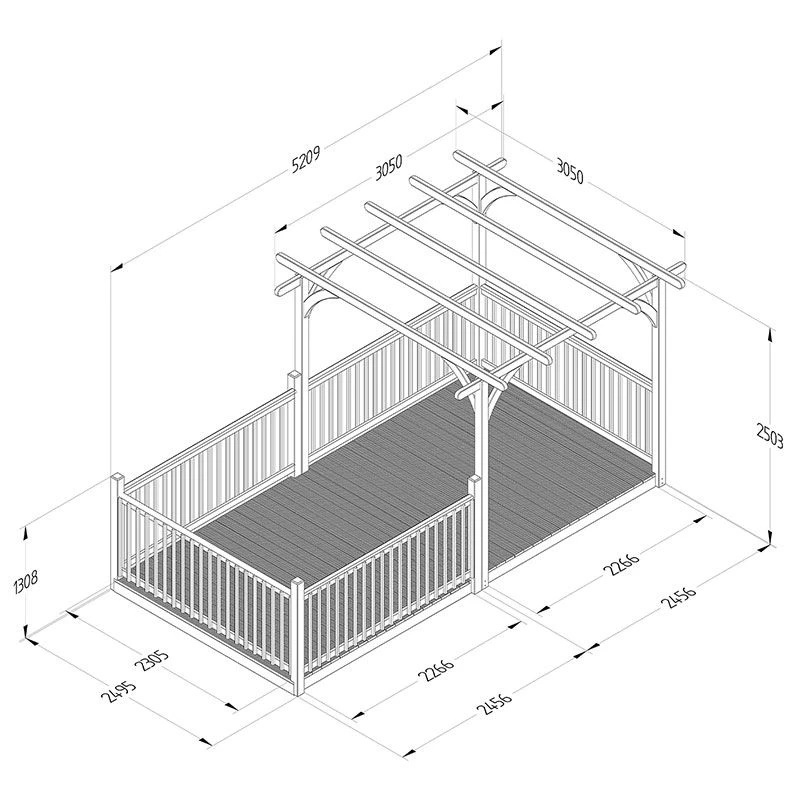 Featuring a pergola, 8×16 decked area and 5 x 8ft balustrades (approximate measurements), this decking kit offers a wonderful backdrop to all of your outdoor entertainment plans.