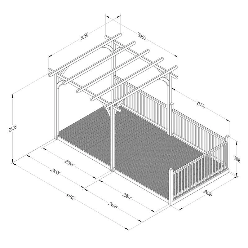Featuring a pergola, 8×16 decked area and 3 x 8ft balustrades (approximate measurements), this decking kit offers a wonderful backdrop to all of your outdoor entertainment plans.