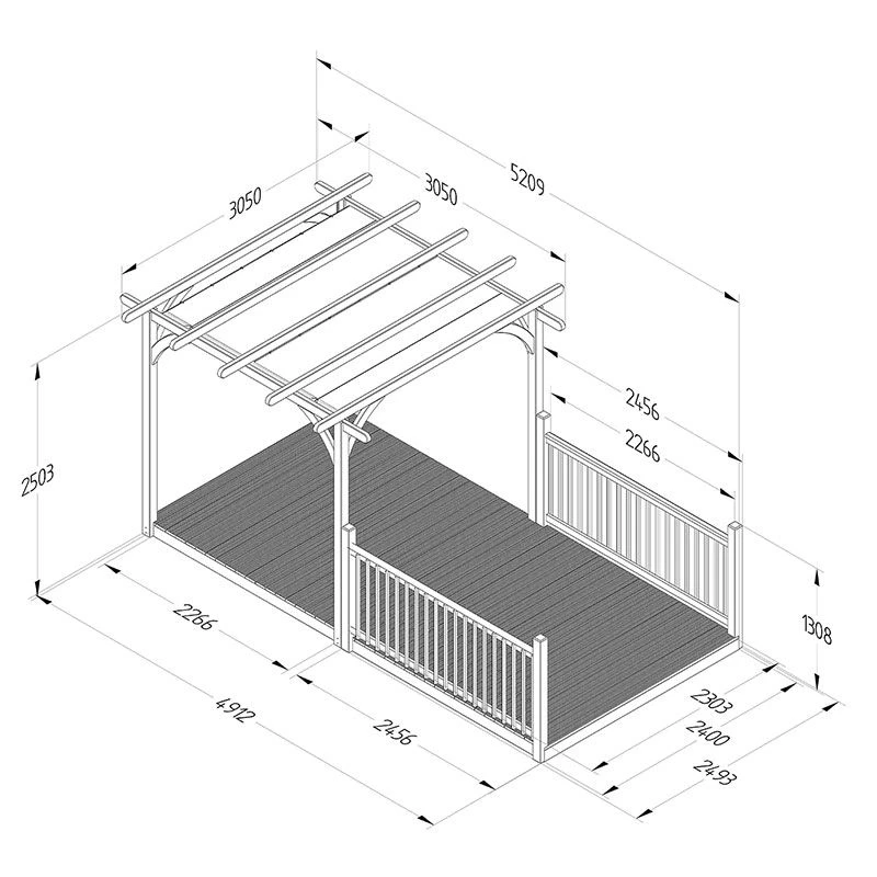 Featuring a pergola, showerproof retractable canopy, 8×16 decked area and 2 x 8ft balustrades (approximate measurements), this decking kit offers the perfect backdrop to all of your outdoor entertainment plans.