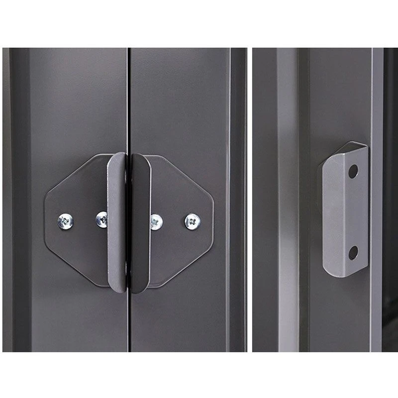 - Double sliding doors with steel handles and padlock point