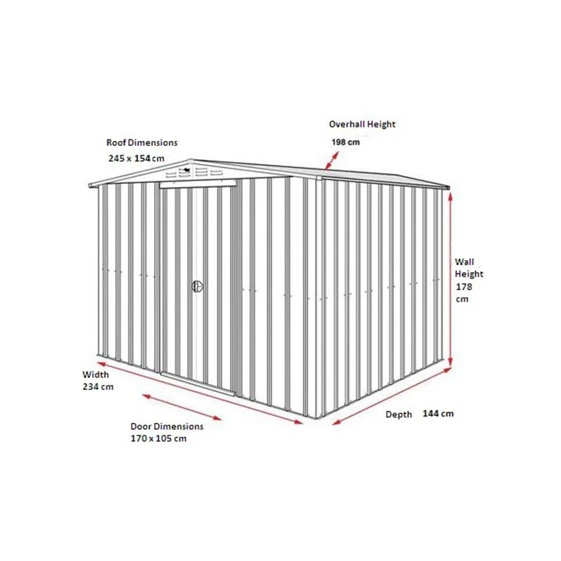 With dimensions of 198cm x 245cm x 154cm, this 8 x 5 garden shed comes with a user-friendly instruction manual, video guide and technical support to help you achieve a straightforward, stress-free assembly.