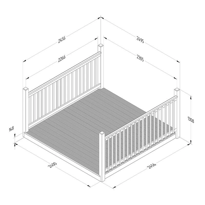 Featuring an 8×8 decked area and 2 x 8ft balustrades (approximate measurements), this decking kit offers the perfect backdrop to all of your outdoor entertainment plans.