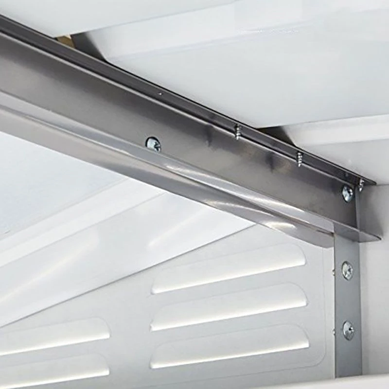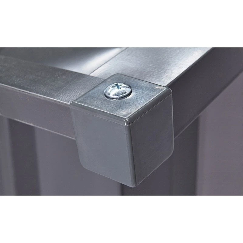 This leading-edge garden shed is built from high-tensile, hot-dipped galvanised steel, with a heavy-gauge galvanised steel frame, base rail and wrap-around corner panels, so enjoys superior bracing throughout.