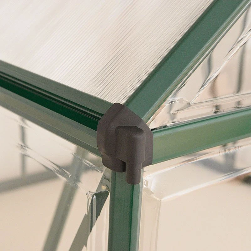The light-diffusing roof panels promote an even temperature by increasing thermal insulation and reducing extreme sunlight exposure. Both roof and side panels are completely UV-protected and shatterproof, and together they allow 82% light transmission. This means your plants will enjoy optimum growing conditions, you will be protected from harmful UV rays, and the panels will neither discolour nor fade in the sun.